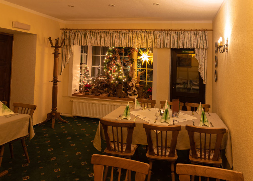 Unsere Kaminstube strahlt ein gemütliches Ambiente im typisch urigen, erzgebirgischen Stil aus. Am lodernden Kaminfeuer finden bis zu 25 Personen einen Platz zum Speisen und Trinken. Die Kaminstube bietet Ihnen kleine individuelle Tischgrößen. Unsere Kaminstube ist dem à la carte Geschäft vorbehalten. Im Schein der Kerzen und beim Flackern des Kaminfeuers in den kälteren Monaten können Sie sich von uns kulinarisch verwöhnen lassen. In unserer Kaminstube sind Hunde gestattet.